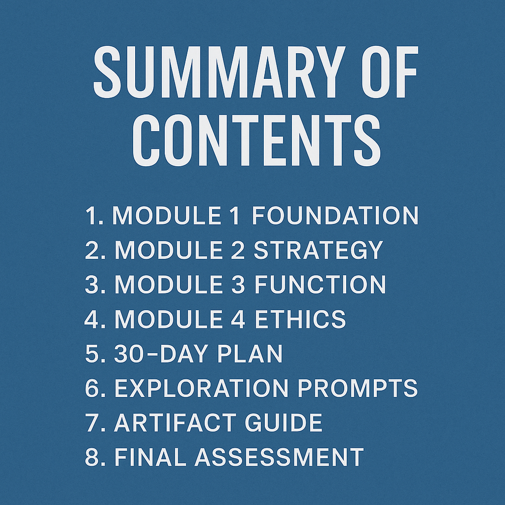 This unique 4-module course + toolkit blends AI-enhanced prompt engineering, UX/UI strategy, and human-centered business acumen into one action-packed learning system — perfect for professionals, educators, Agile teams, and change leaders seeking smarter, faster, more ethical impact.