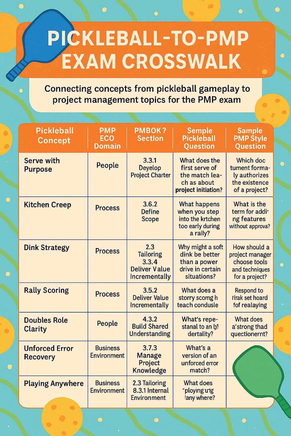 - Mapping Pickleball strategies to PMBOK performance domains